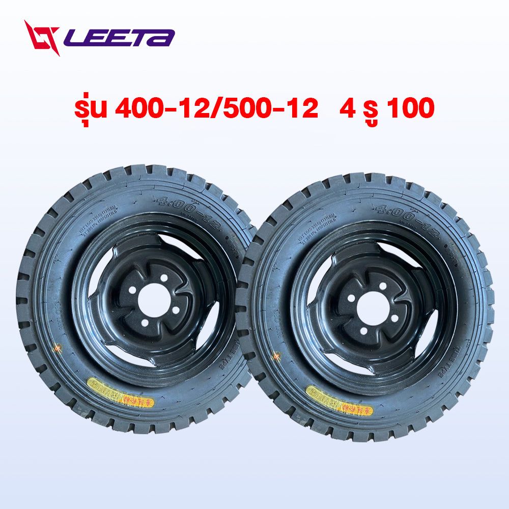 5.ยางนอก+ยางใน+กะทะล้อขนาด 400-12 /500-12 รุ่น 4 รู 100 ใช้กับสามล้อ ขนาดกะทะล้อ 4 รูลายแบบรถบรรทุก ใช้งานทนทาน