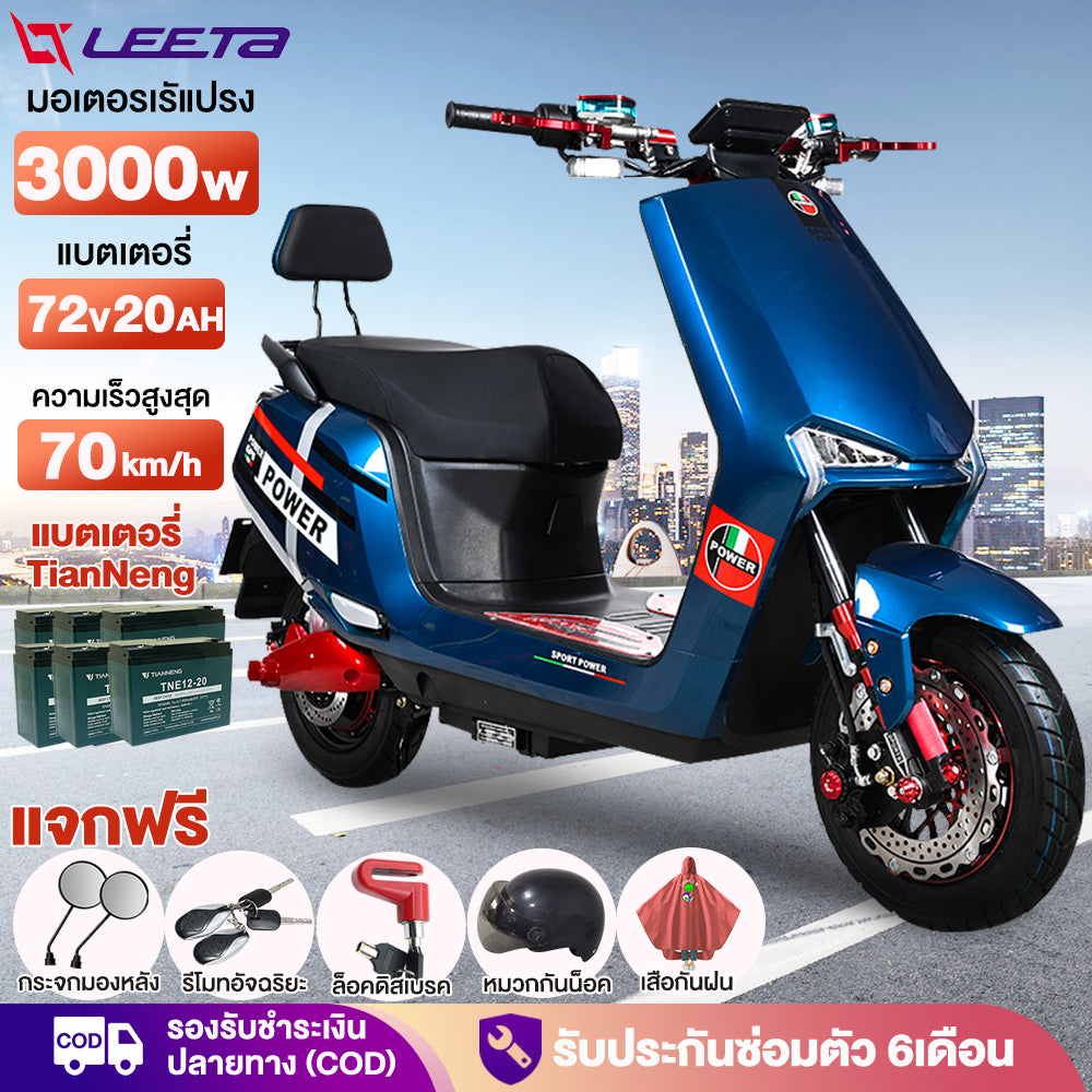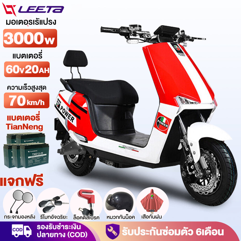 LEETA มอเตอร์ไซค์ ไฟฟ้า 3000W มอไซด์ไฟฟ้า สกูตเตอร์ไฟฟา รถไฟฟ้าผู้ใหญ่ 70กม. /ชม จักรยานไฟฟ้า รับประกัน