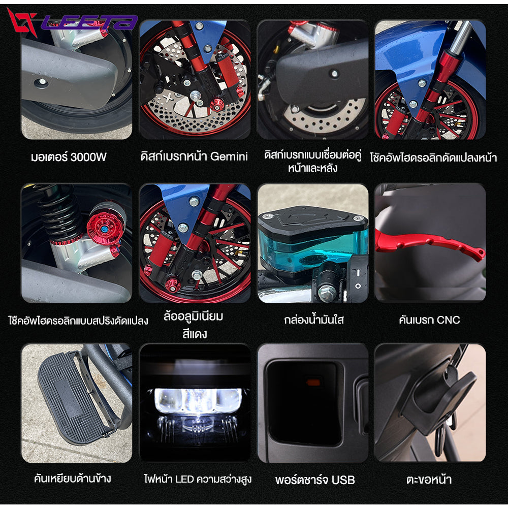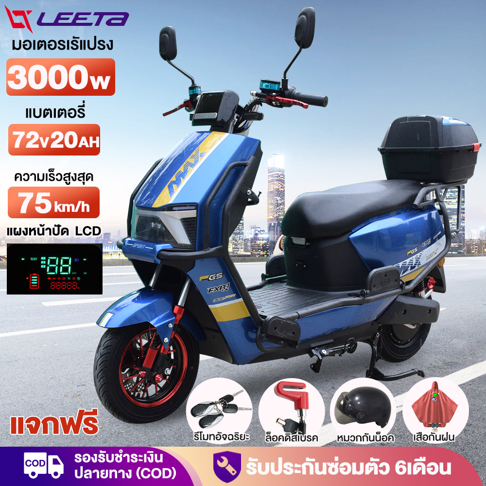 LEETA มอเตอร์ไซค์ไฟฟ้า 3000W รถจักรยานยนต์ไฟฟ้า 72V20AH รุ่นอัปเกรดใหม่ ความเร็ว 75km/h มีกล่องท้ายรถ