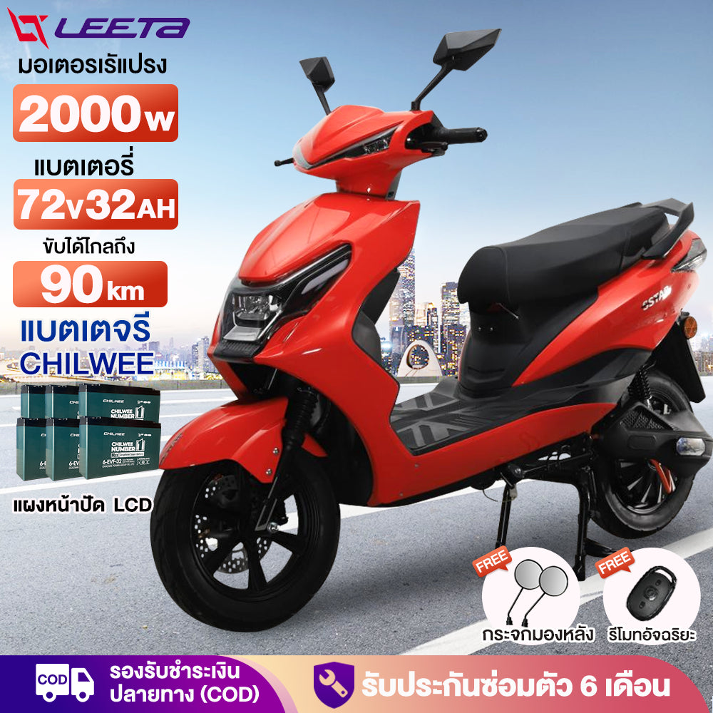 LEETA รถมอเตอร์ไซต์ไฟฟ้า รถไฟฟ้าผู้ใหญ่ ขับได้ไกลถึง95km 2000W CHILWEE72V32AH มอเตอร์ไซค์ไฟฟ้า สกูตเตอร์ ไฟฟ้า รับประกัน