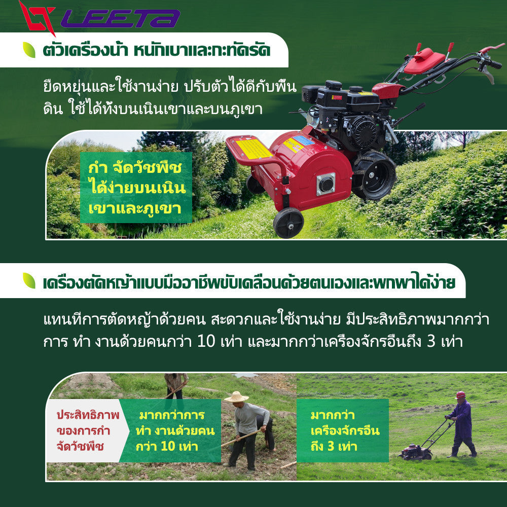 LEETA เครื่องตัดหญ้าแบบเข็น เก็บเกี่ยววัชพืช เครื่องยนต์เบนซิน สวนผล เครื่องตัดหญ้า สามารถปรับความสูงในการต หน้ากว้าง50