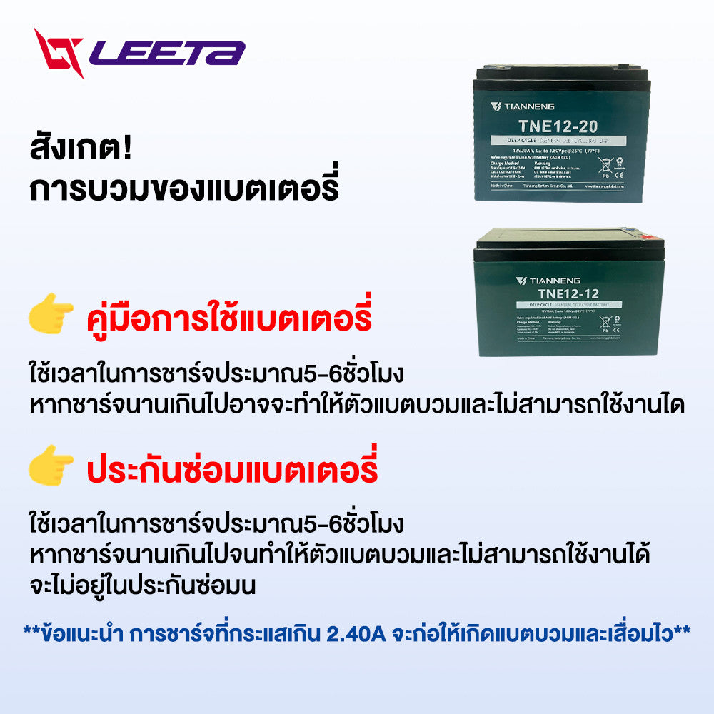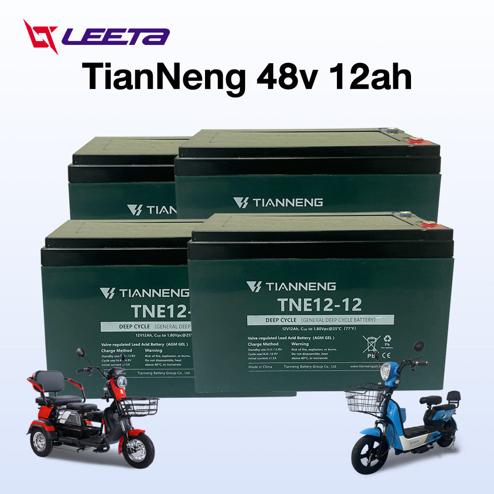 LEETA แบตเตอรี่จักรยานไฟฟ้า 48V 12V12ah แบตเตอรี่TianNeng แบตเตอรี่ตะกั่วกรด สำหรับ มอเตอร์ไซค์ไฟฟ้า รถสามล้อไฟฟ้