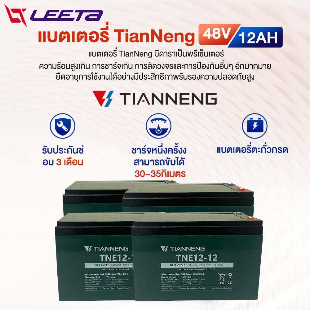 แรงดันแบตเตอรี่ : TianNeng48V 12AH