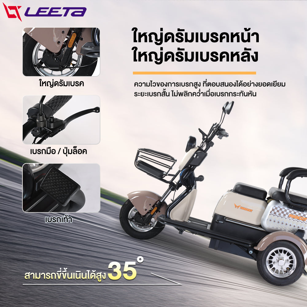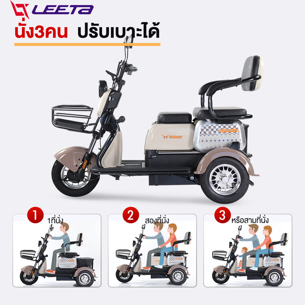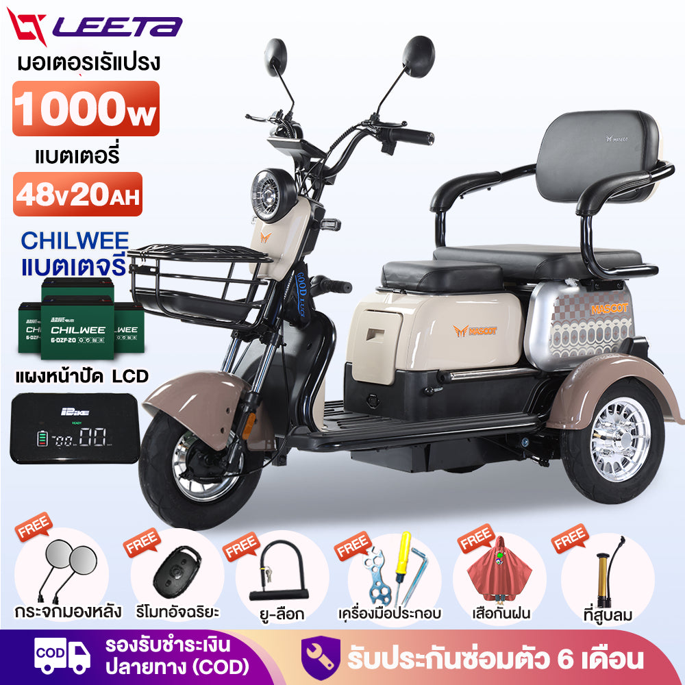 LEETA POWER รถไฟฟ้าผู้ใหญ่ 3ล้อ 1000W รถสามล้อไฟฟ้าจักรยานไฟฟ้าสามล้อ รถมอเตอร์ไซค์ไฟฟ้าสามล แจกฟรี7ซิ้น รับประกัน