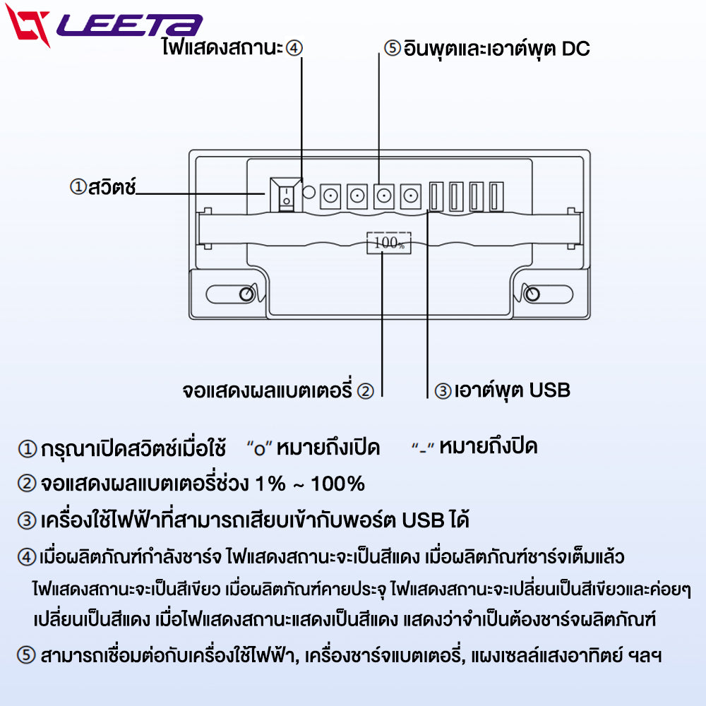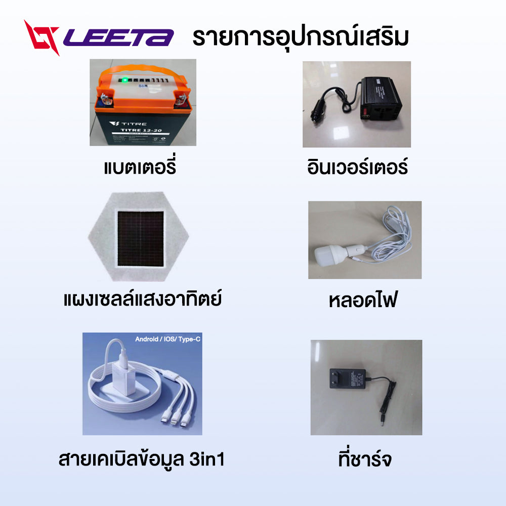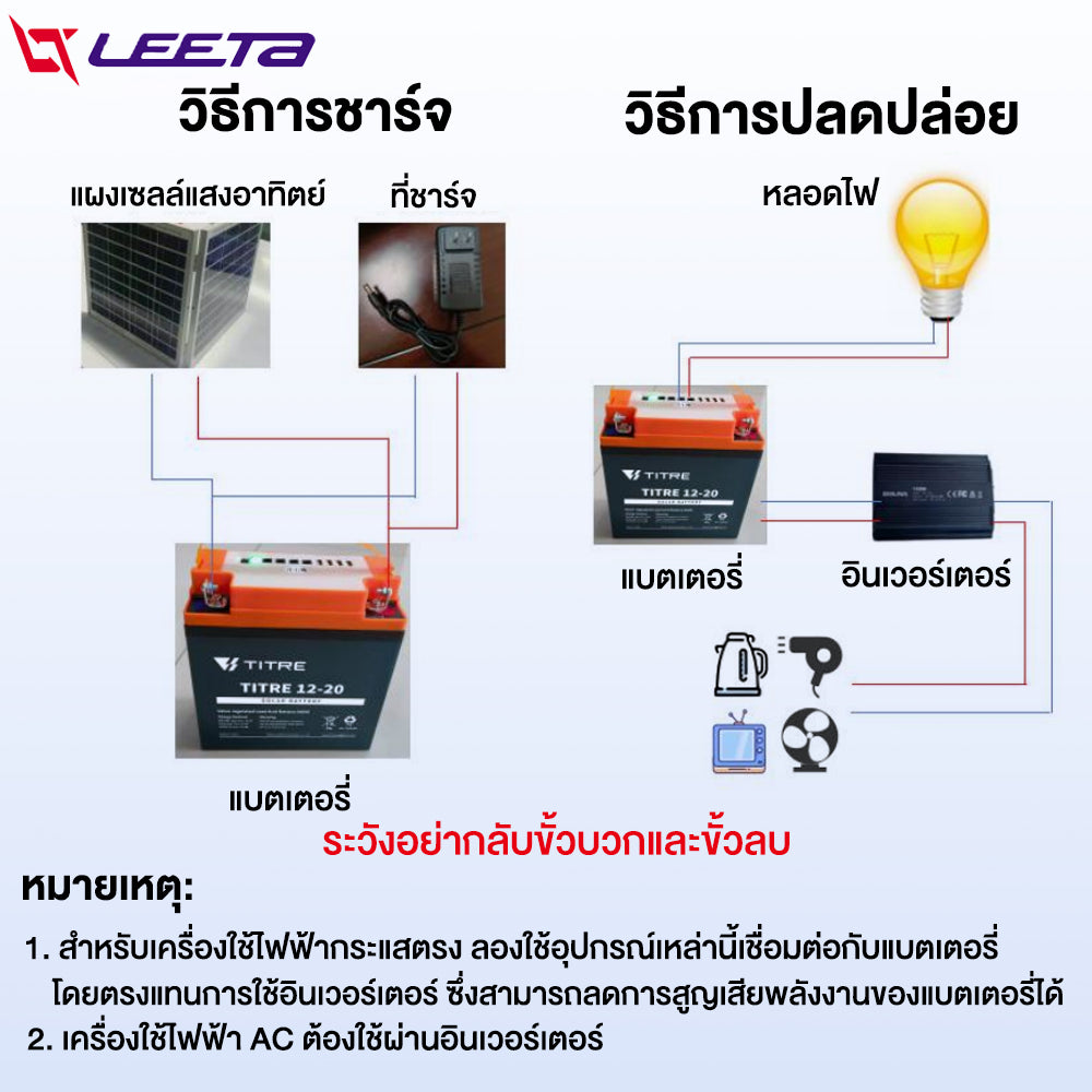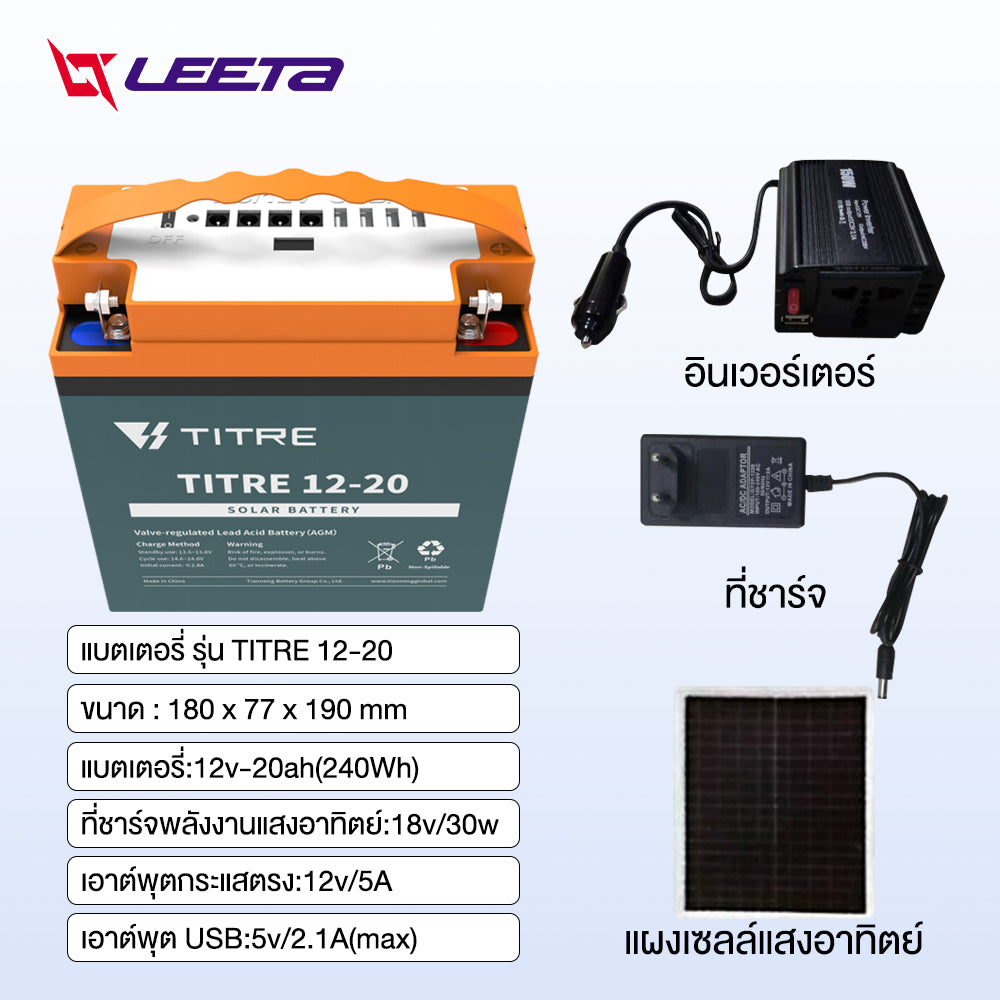 LEETA POWER เพาเวอร์ แบงค์ ธนาคารพลังงาน USBชาร แบตเตอรี่ตะกั่วกรดTianNeng 12V20AH แผงเซลล์แสงอาทิตย์ พาเวอร์ แบงค์