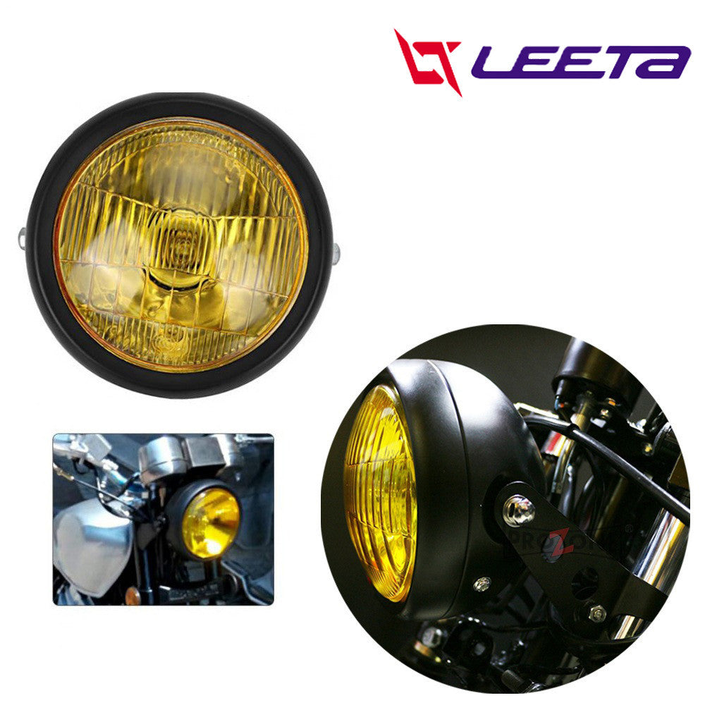 Retro รถจักรยานยนต์ รอบไฟหน้าเลนส์สีเหลืองการปรับเปลี่ยนไฟหน้าเหมาะสำหรับ Universal