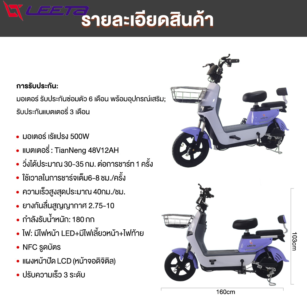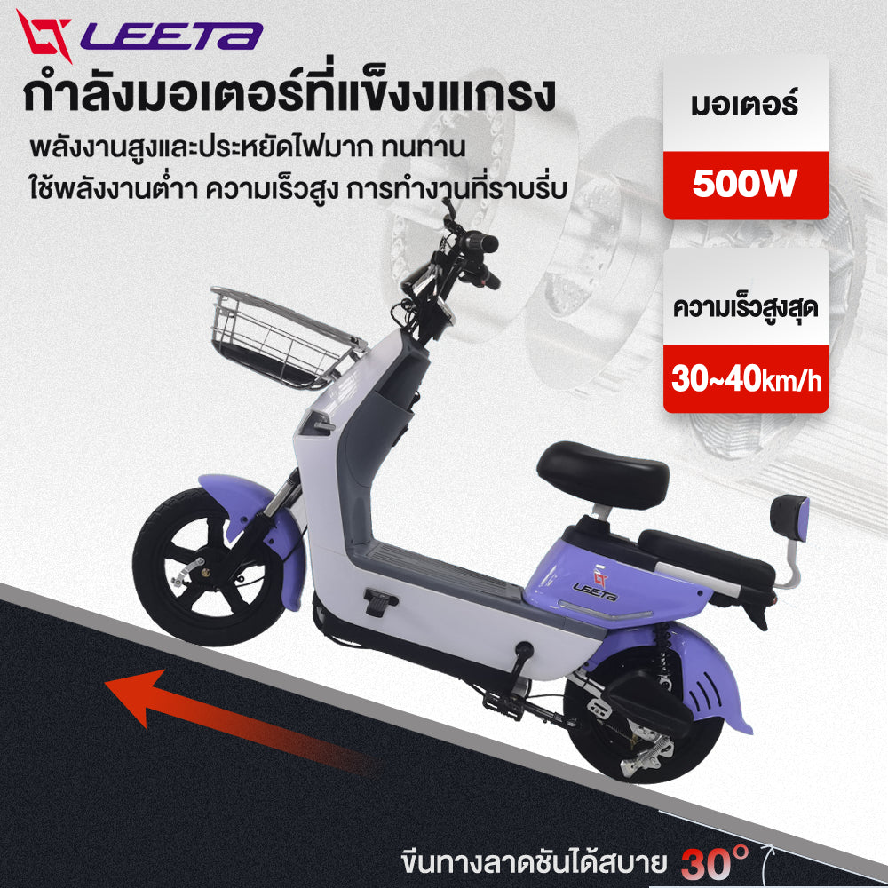 MALL1500】LEETA จักรยานไฟฟ้า NFCรูดบัตร 500W48V12AH รถไฟฟ้าผู้ใหญ่2ล้อ รับประกันซ่อมตัว สกู๊ตเตอร์ไฟฟ้า แจกฟรี8ซิ้น