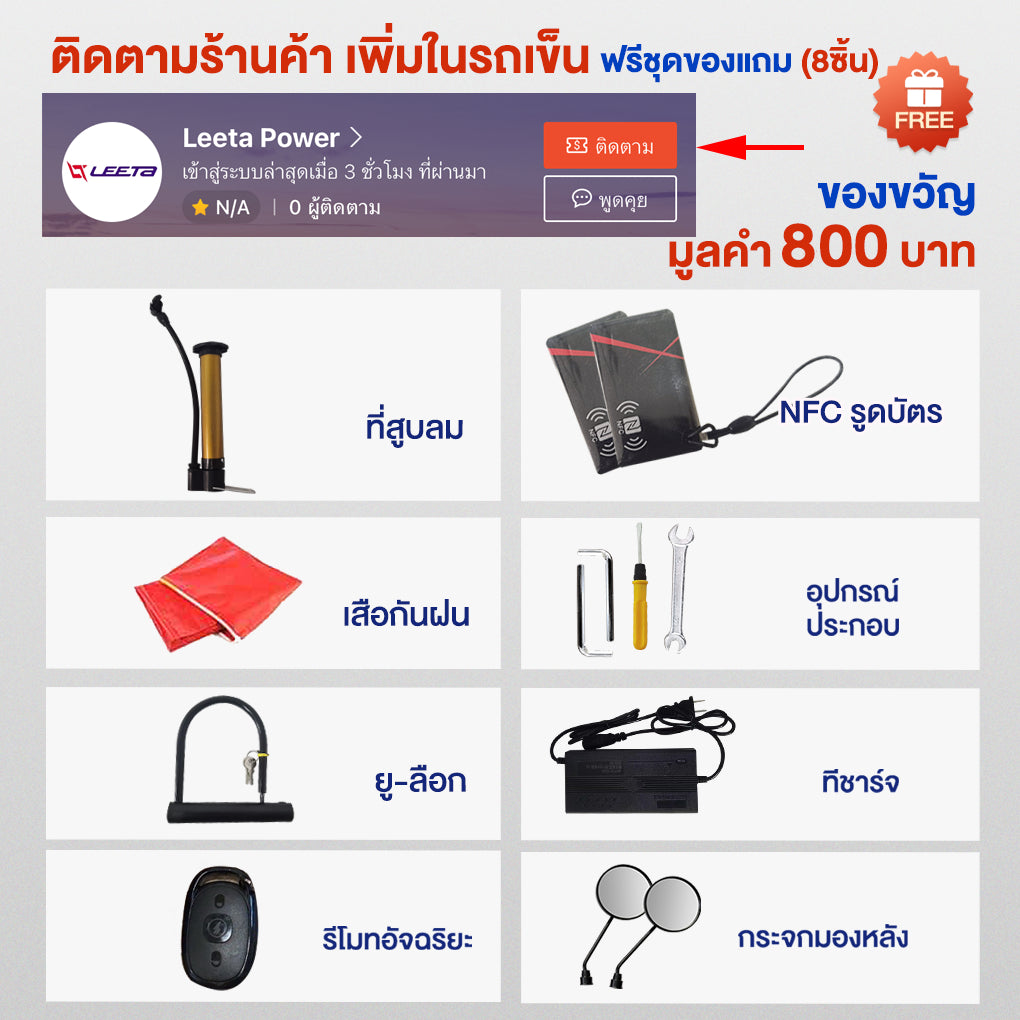ฟรีชุดของแถม ( 8ซิ้น): แจกฟรี 1ชิ้น NFCรูดบัตร、ที่สูบลม、กระจกมองหลัง、รีโมทอัจฉริยะ、ทีชาร์จ、เครื่องมือประกอบ、เสือกันฝน、ยู-ลือก